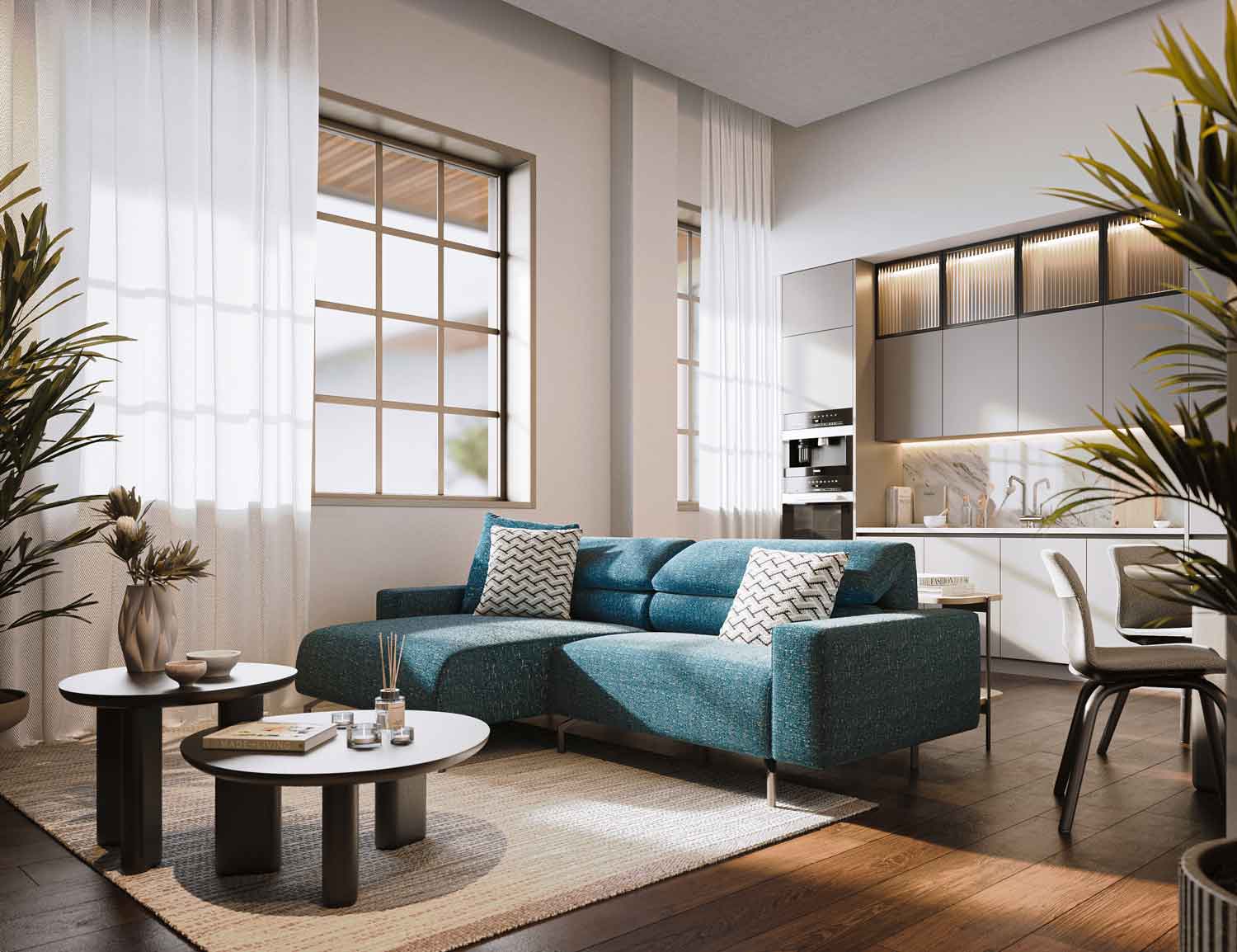 Ogni unità abitativa offre una sorprendente doppia area living, creando così una zona lounge dedicata per un’esperienza di abitare versatile e dinamica.